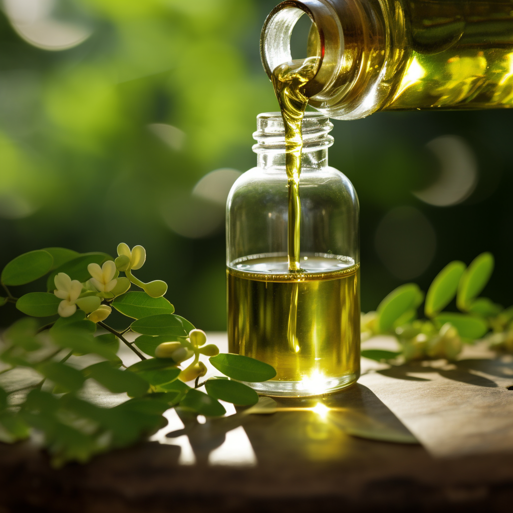 Indulge in the wellness properties of Pure Moringa Oil. Crafted for holistic health, it revitalizes and repairs your skin, mirroring your inner health and resilience.